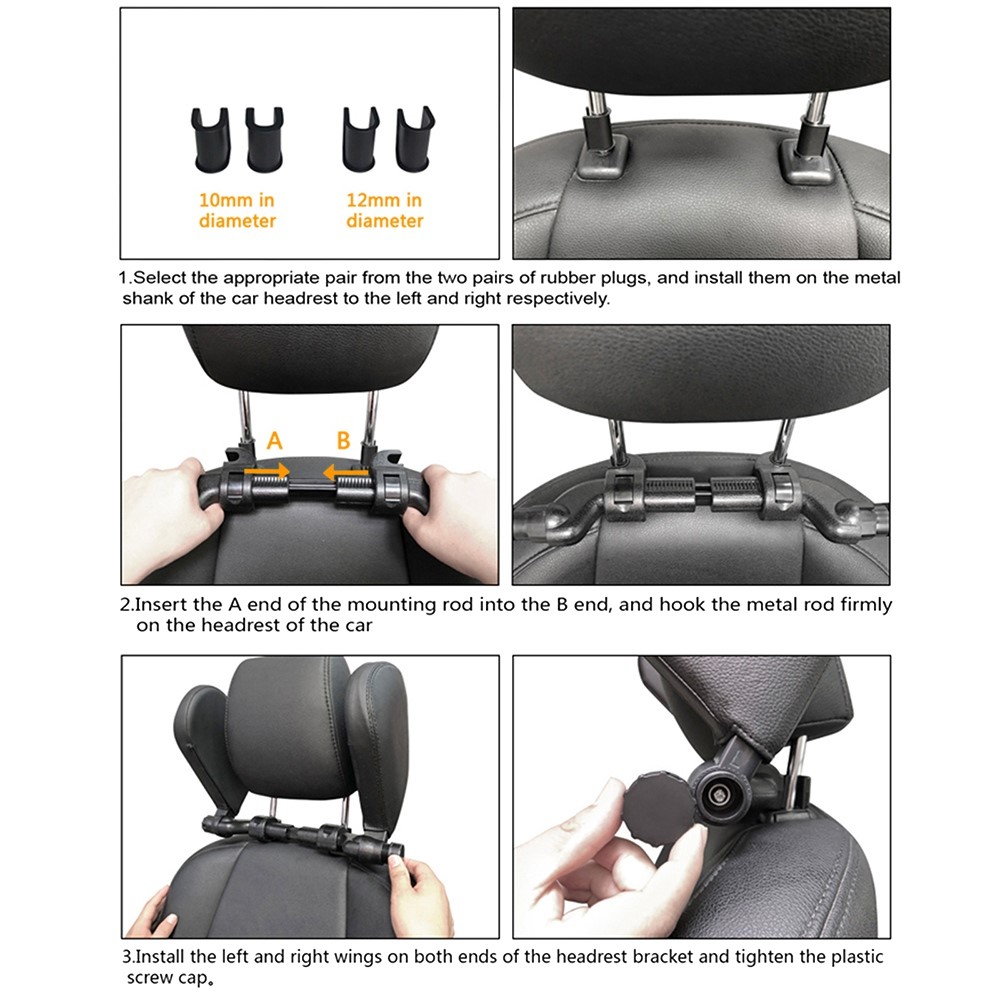 Brett användningsområde: De två monteringshålen på bilsätets nackstödskudde kan justeras mellan 1-7 tum, passande för de flesta modeller.